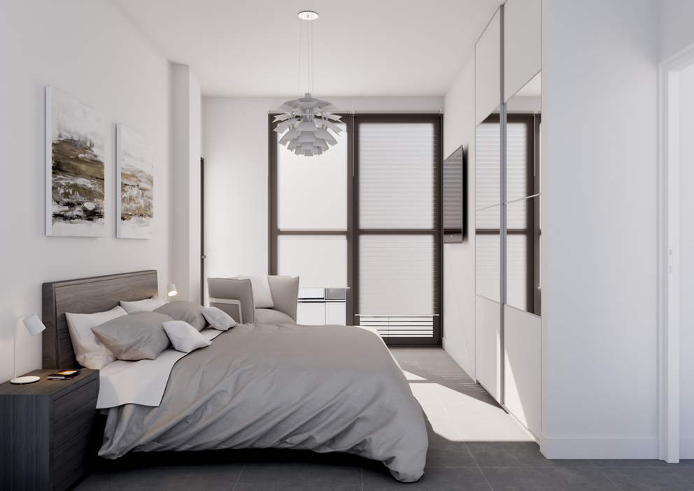 Vivienda de un dormitorio "B" en la cuarta planta. Cuenta con un solo baño y un lavadero. Su distribución es tipo salón-cocina y cuenta con una terraza de 2,5m2.