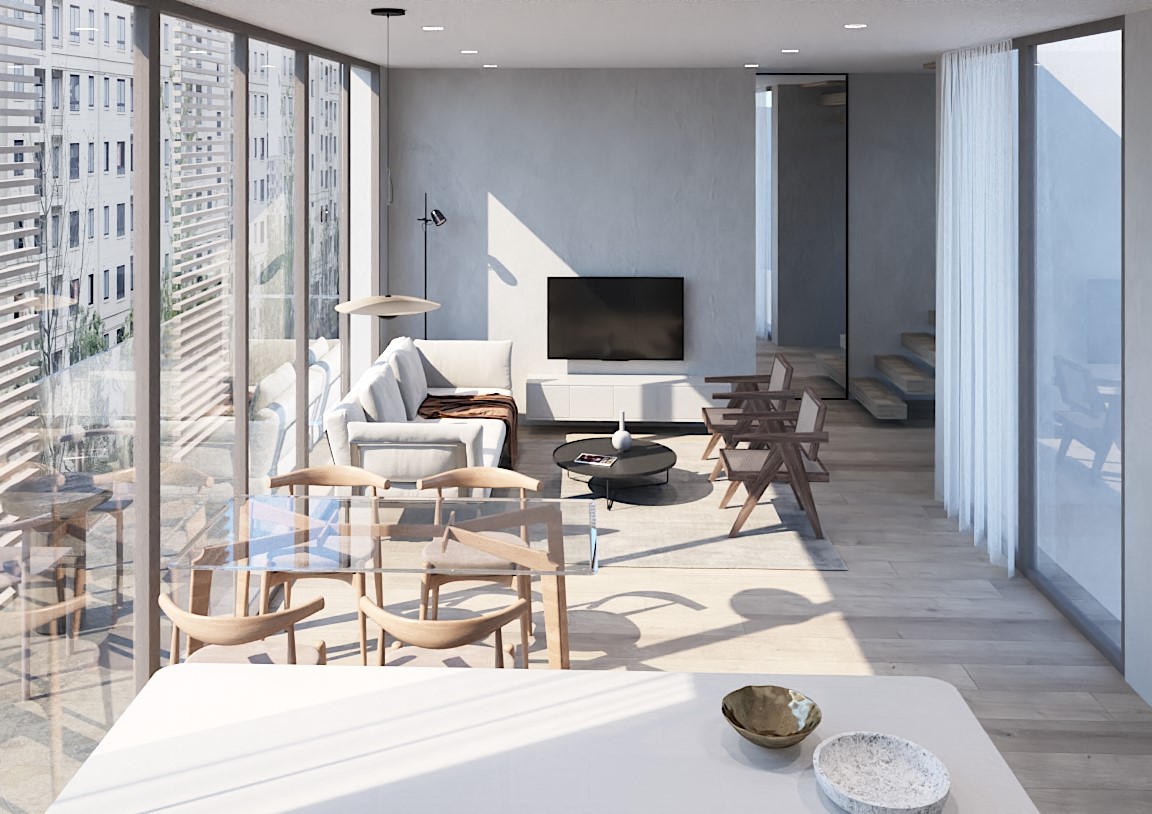 La promoción actualmente se compone de 7 viviendas. Entre ellas viviendas de un dormitorios y dúplex de dos dormitorios. Espacios comunes como el solarium y terrazas individuales.